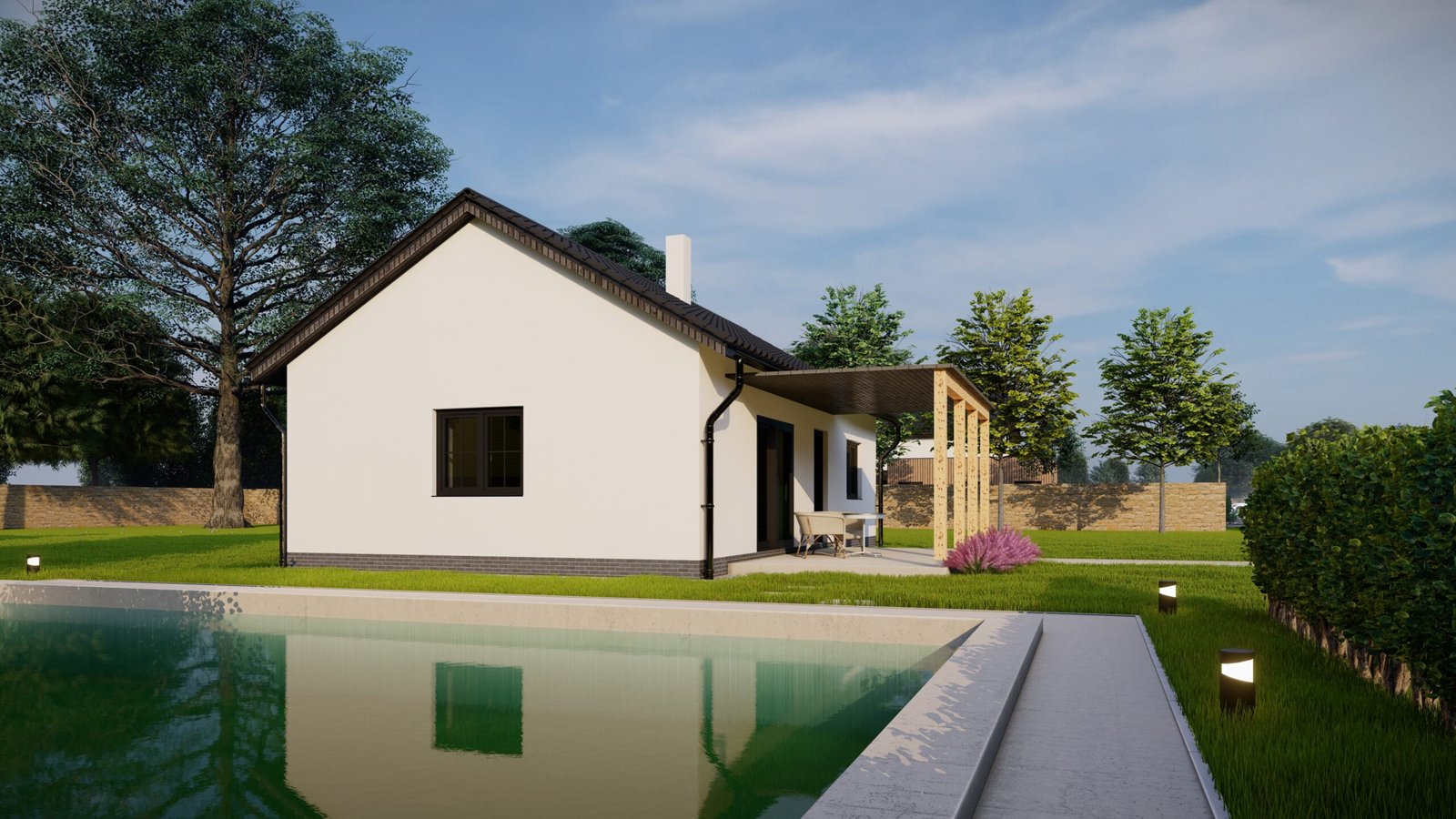 Bungalov Julia 46 je ideálním bydlením pro pár. Jedná se o velice jednoduchý a kompaktní dům se zastavěnou plochou 46 m2. Dům je bez chodeb a využívá tak prostor v maximální míře. Je vhodný pro umístění na malý a stísněný pozemek.