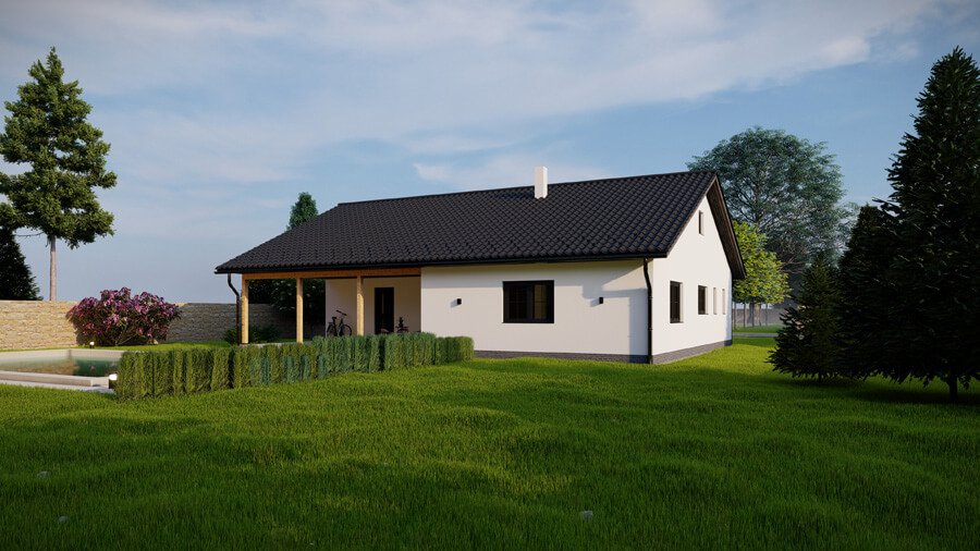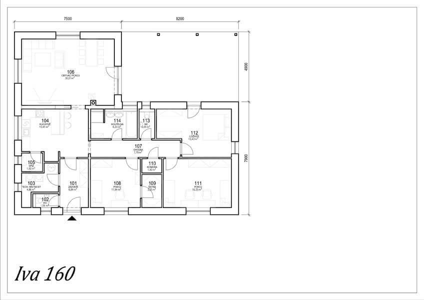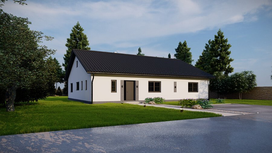 Rodinný dům Iva 160 nabízí se svojí velikostí a množstvím obytných pokojů ideální bydlení pro velkou rodinu. Obývací pokoj je oddělen od zbylé části domu a nabízí tak zvýšenou klidu a pohodlí. Se zastavěnou plochou 160 m2 je tento dům vhodný na rozlehlejší parcely.