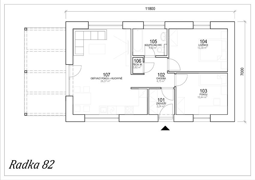 Rodinný dům Radka 82 je dům střední velikosti určený pro pár, nebo malou rodinu. Francouzské okno ze společenské části je ideální pro navázání na venkovní terasu. Tento dům se zastavěnou plochou 82 m2 je vhodný na menší pozemky.